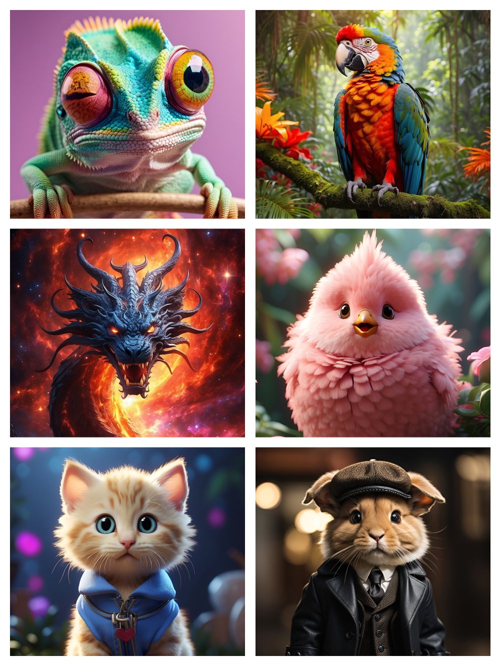 Explore a unique set of 70 AI-generated animal images, capturing the beauty and diversity of wildlife. Perfect for digital projects, each image combines creativity with nature’s charm.